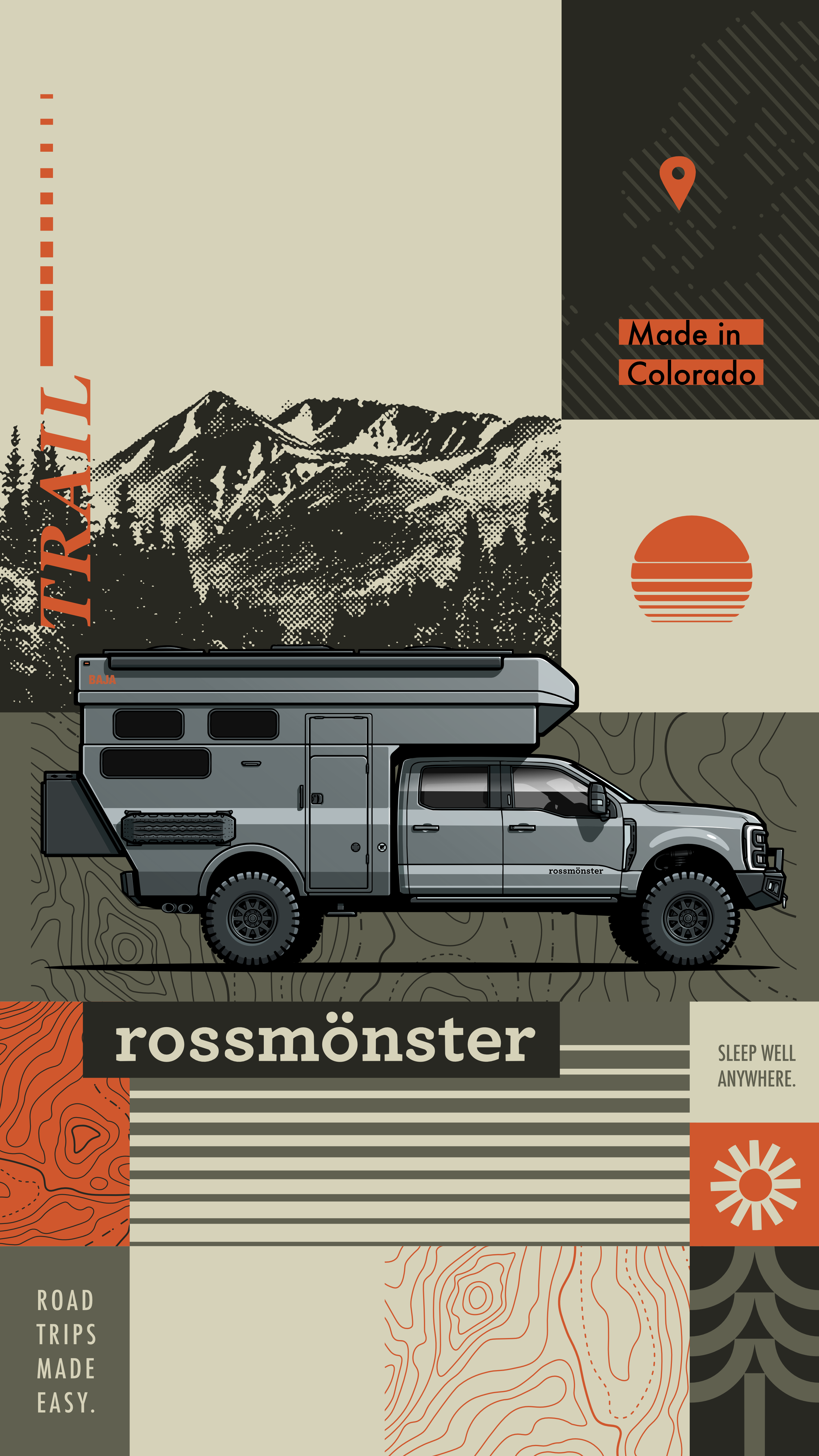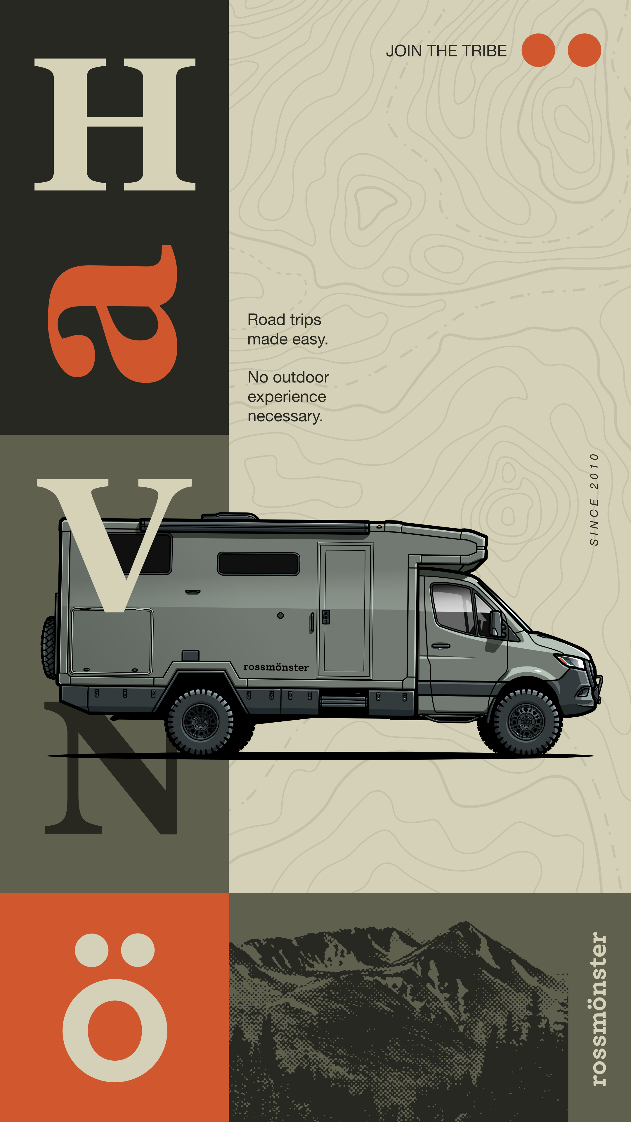 Illustration and graphic design made for a company producing vans and campervans suitable for any adventure.
